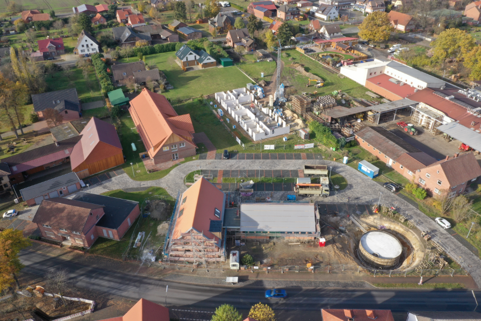 Die Gestaltung der neuen Dorfmitte ist angepasst an die vorhandene Bausubstanz und integriert in